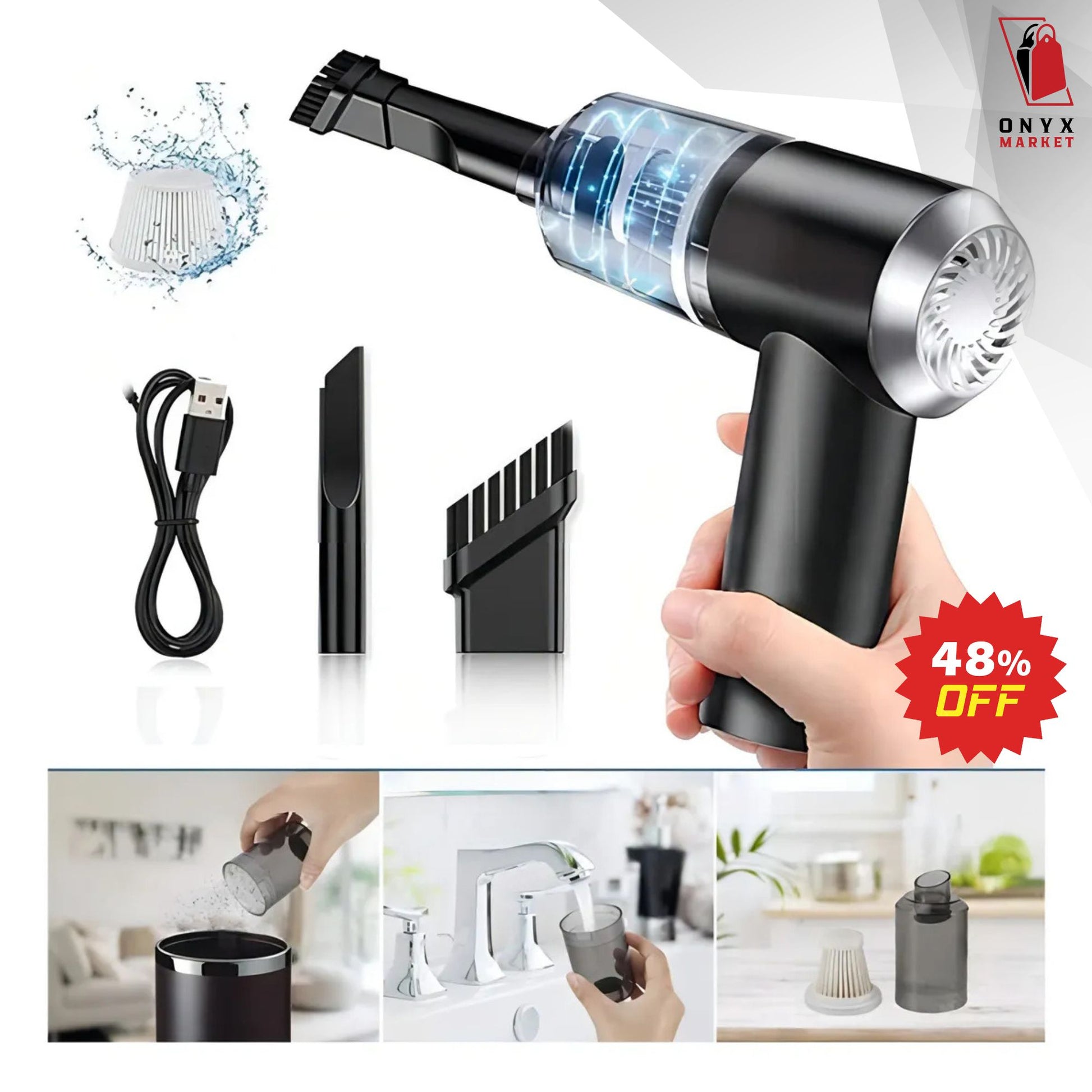Pequeña pero poderosa, nuestra mini aspiradora es la solución perfecta para mantener tu hogar y auto impecables. Ideal para eliminar migas, polvo y suciedad en cualquier rincón. ¡Llévala contigo a donde vayas!